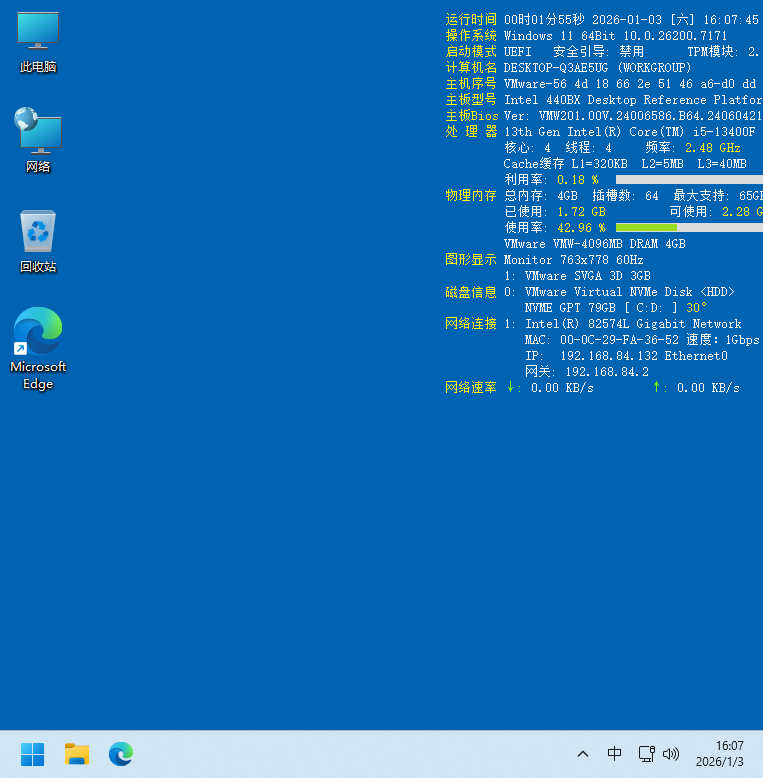 无忧论坛 Lightning 大佬出品的一个硬件信息显示工具,运行后会在桌面右侧显示电脑硬件信息,常被用来集成在 Windows PE 里。