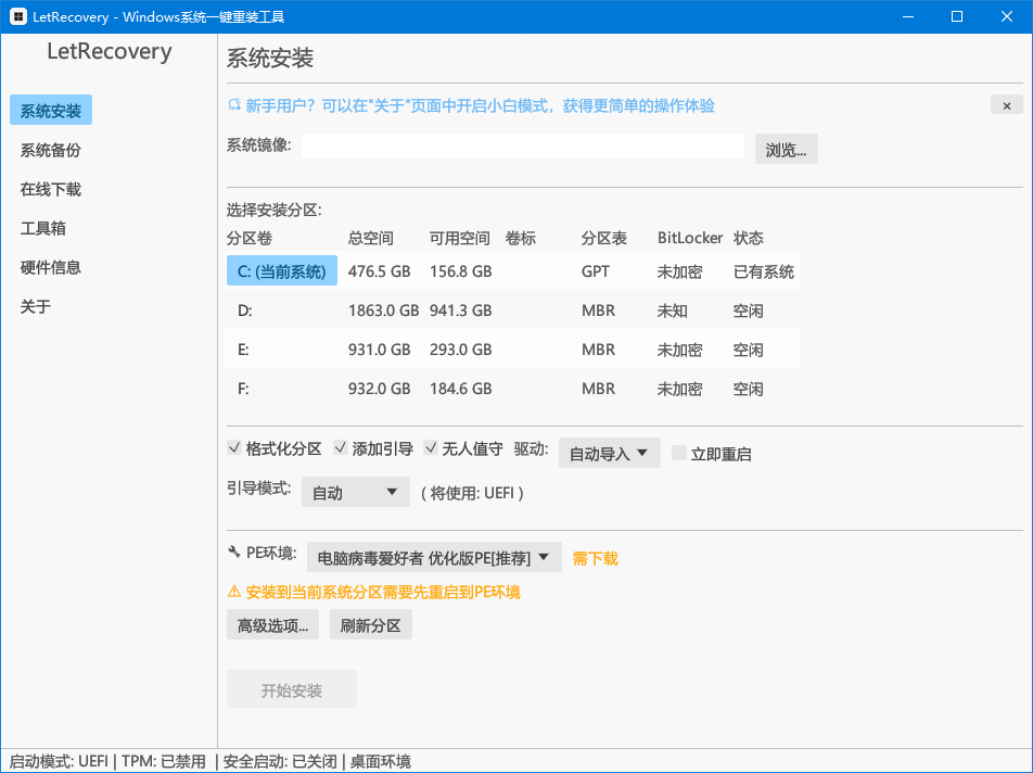 LetRecovery 是一款基于 Rust 开发的免费开源 Windows 系统重装工具,支持 WIM/ESD/GHO/ISO 等多种镜像格式的部署与备份,还集成了在线下载、驱动管理、引导修复等实用功能。