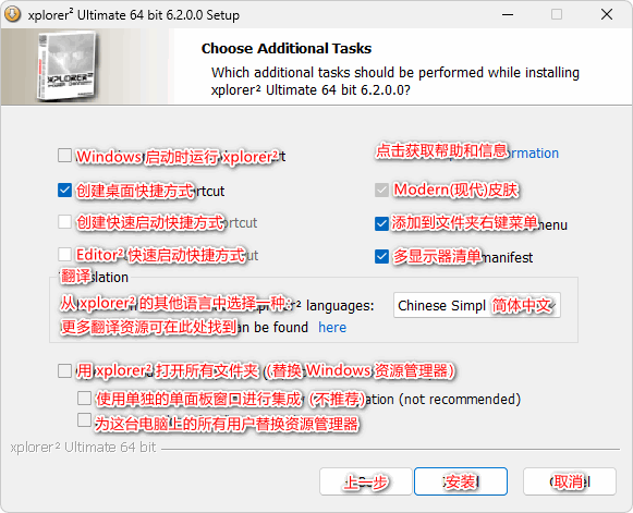 安装时记得勾选你需要的语言,比如简体中文请勾选:Chinese Simple