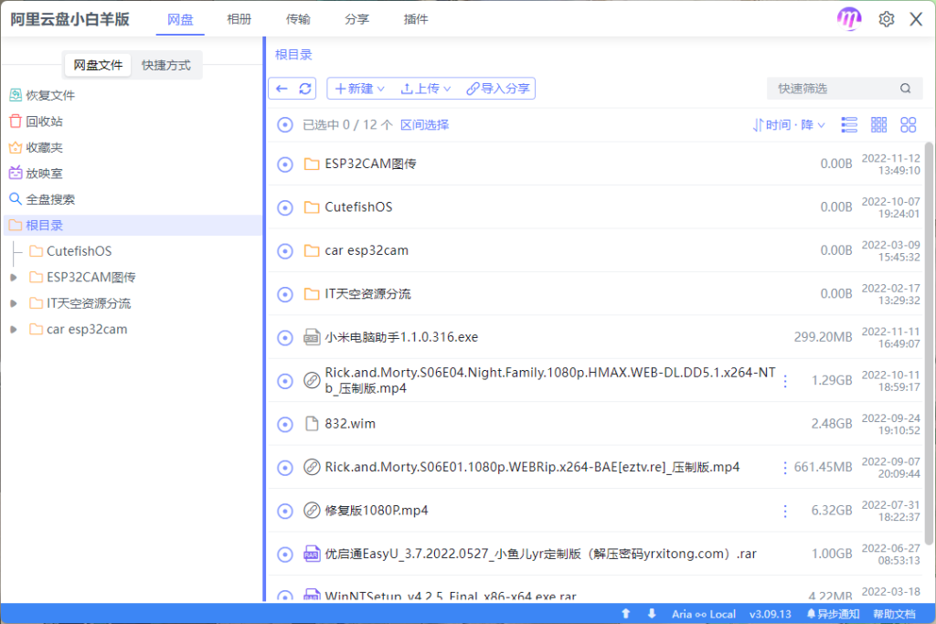 并且你可以为任意文件和文件夹创建分享链接。尽管链接只有小白羊版的阿里云盘可以解析转存,但在官方没有分享功能的情况下这个方式已经足够方便。
