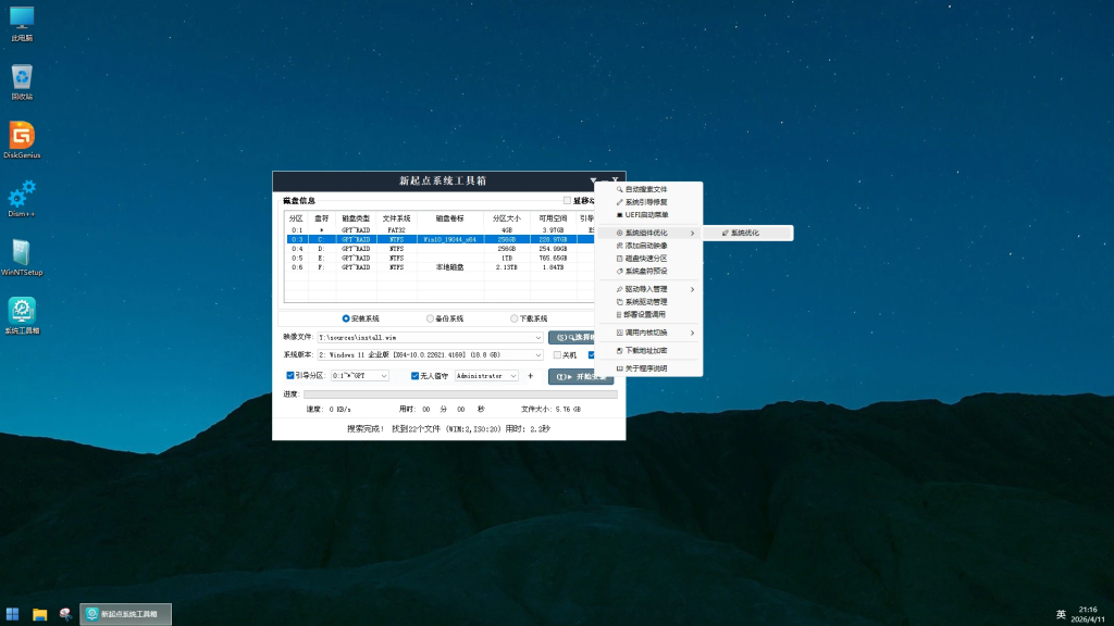 (1)内核细节优化,更新Imagine_2.5.4,新起点系统维护工具箱,删除硬盘哨兵,新增分区助手和Notepad4。