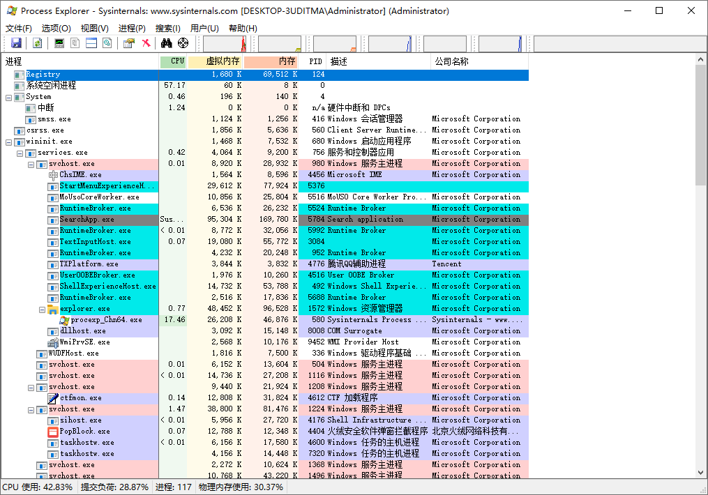 Process Explorer 是由 Sysinternals 开发的 Windows 系统和应用程序监视工具,已并入微软旗下。不仅结合了 Filemon(文件监视器)和 Regmon(注册表监视器)两个工具的功能,还增加了多项重要的增强功能。包括稳定性和性能改进、强大的过滤选项、修正的进程树对话框(增加了进程存活时间图表)、可根据点击位置变换的右击菜单过滤条目、集成带源代码存储的堆栈跟踪对话框、更快的堆栈跟踪、可在 64位 Windows 上加载 32位 日志文件的能力、监视映像(DLL和内核模式驱动程序)加载、系统引导时记录所有操作等。